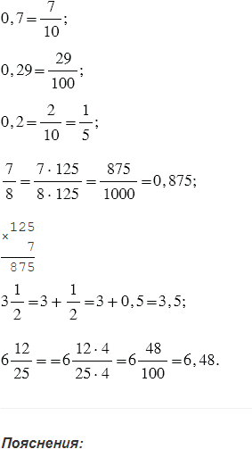 Числа 0,7; 0,29; 0,2 представьте в виде обыкновенной дроби, а числа