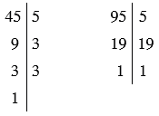 в) НОК(45; 95) = 5 • 19 • 3 • 3 = 95 • 9 =