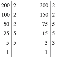 г) НОК(200; 300) = 2 • 2 • 3 • 5 • 5 • 2 =