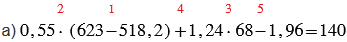 а) 0,55 • (623 - 518,2) + 1,24 • 68 - 1,96;