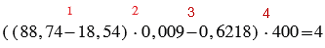 б) ((88,74 - 18,54) • 0,009 - 0,6218) • 400.