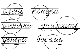 Задание 2. Прочитай. Какое слово «спряталось» в каждом из слов? Обведи его в кружок. Подчеркни мягкий знак (ь).