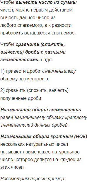 Чтобы сравнить (сложить, вычесть) дроби с разными знаменателями, надо: