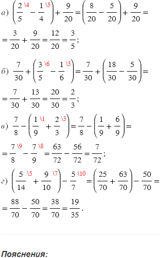 3) если в выражении есть скобки, то сначала выполняют действия в скобках, учитывая при этом правила 1 и 2.