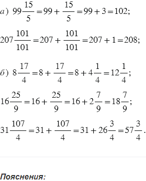 Запишите смешанные числа так, чтобы их дробная часть не была неправильной дробью:
