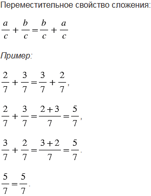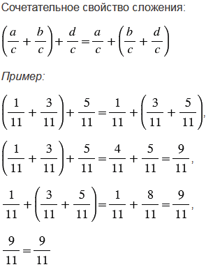 Используя переместительное и сочетательное свойства натуральных чисел, докажите переместительное и сочетательное свойства сложения дробей с одинаковыми знаменателями.