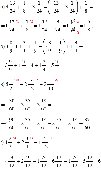 3) при необходимости сократить дробь (разделить числитель и знаменатель дроби на их наибольший общий делитель), выделить целую часть (когда числитель больше знаменателя) и прибавить ее к полученной целой части.