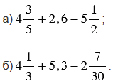 б) Чтобы выполнить вычисления, преобразуем десятичную дробь, данную в выражении, в смешанное число, затем выполняем вычисления со смешанными числами по следующим правилам: