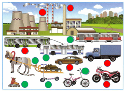 2. Отмечаем красным карандашом то, что загрязняет воздух, зелёным – то, что не загрязняет.