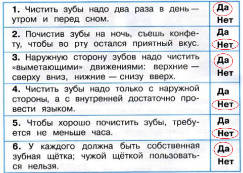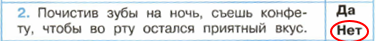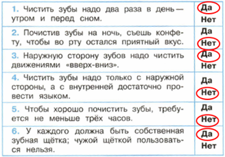 6. Наш общительный Попугай любит давать всем разные советы. Вот и тебе он торопится посоветовать, как надо чистить зубы. Каким советам ты последуешь, а каким нет? Обведи "Да" или "Нет" в таблице на с. 8.