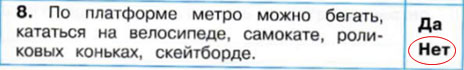 4. Наш Попугай предлагает проверить, знаешь ли ты правила безопасного поведения пассажира общественного транспорта. Какие утверждения правильные, а какие нет? Обведи "Да" или "Нет".