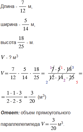 Объем прямоугольного параллелепипеда равен произведению трех его измерений (длины, ширины и высоты).