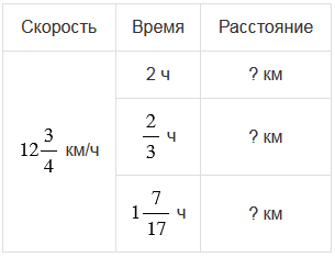 Велосипедист едет со скоростью км/ч. Какое расстояние он проедет за 2 ч, ч и ч?