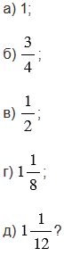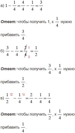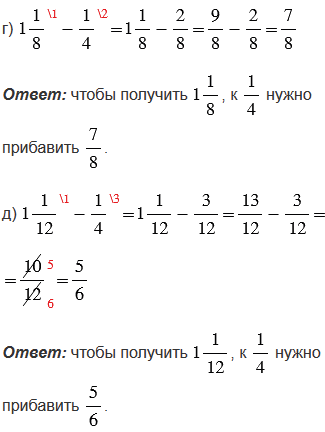 1) чтобы найти разность двух дробей с одинаковыми знаменателями, нужно из числителя уменьшаемого вычесть числитель вычитаемого, а знаменатель оставить прежним, при этом помним то, что единицу всегда можно представить в виде неправильной дроби с одинаковыми числителем и знаменателем;