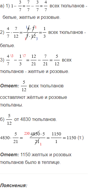 б) Сколько жёлтых и розовых тюльпанов, если всего в теплице 4830 тюльпанов?