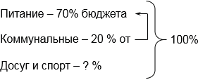 70% бюджета составили затраты на питание и на товары повседневного спроса, 14% бюджета составили затраты на на коммунальные платежи и налоги, а остальное было израсходовано на культурный досуг и занятия спортом, значит, расходы на спорт и досуг составили: