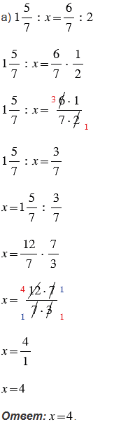 В пунктах а) и б) сначала выполняем вычисления в правой части уравнения, затем в пункте а) находим неизвестный делитель, а в пункте б) - неизвестное делимое.
