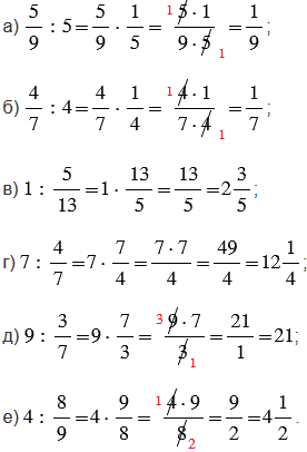 При выполнении умножения дробей, чтобы вычисления были проще, не надо перемножать сразу, лучше сделать это после сокращения. Сократить дробь - значит, разделить ее числитель и знаменатель на одно и то же число (наибольший общий делитель).
