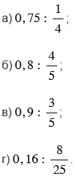 Чтобы преобразовать обыкновенную дробь в десятичную, используем основное свойство дроби, а именно, умножаем обыкновенную дробь на такой дополнительный множитель, чтобы в знаменателе получилась единица с нулями (10, 100, 1000 и т.д.). Затем полученную обыкновенную дробь записываем в виде десятичной дроби, учитывая то, что количество знаков после запятой у десятичной дроби совпадает с количеством нулей в знаменателе обыкновенной дроби.