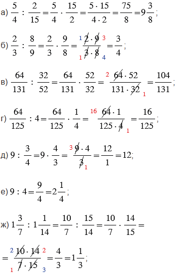 При выполнении умножения дробей, чтобы вычисления были проще, не надо перемножать сразу, лучше сделать это после сокращения. Сократить дробь - значит, разделить ее числитель и знаменатель на одно и то же число (наибольший общий делитель).