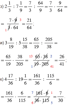 Чтобы выполнить деление, смешанные числа преобразовываем в неправильные дроби. Чтобы преобразовать смешанное число в неправильную дробь, надо целую часть числа умножить на знаменатель дробной части и к полученному произведению прибавить числитель дробной части; эту сумму записать как числитель неправильной дроби, а в ее знаменатель записать знаменатель дробной части смешанного числа.