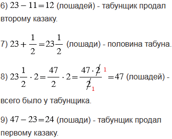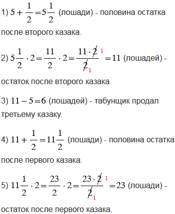 Рассуждения начинаем с третьего казака, учитывая то, что табунщик оставил себе 5 лошадей.