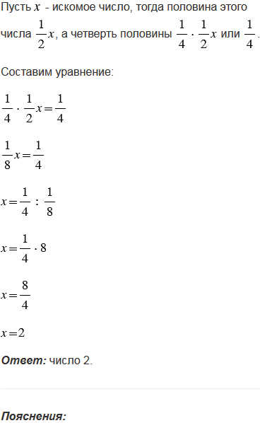 Четверть от половины числа равна одной четвёртой. Найдите это число.