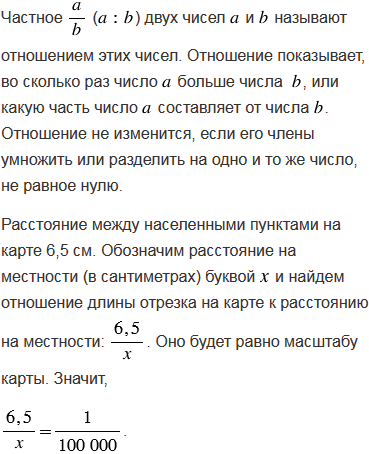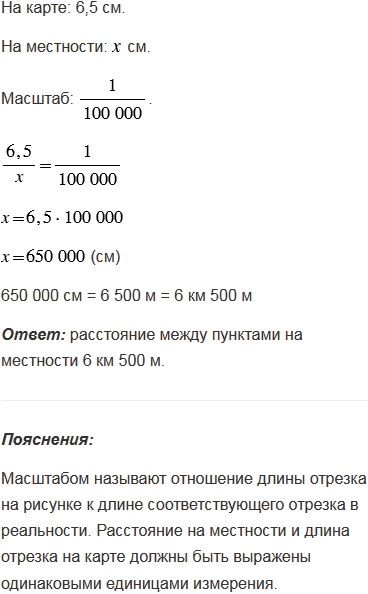 Расстояние между населенными пунктами на карте равно 6,5 см. Найдите расстояние между этими пунктами на местности, если масштаб карты
