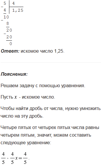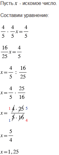 Четыре пятых от четырех пятых числа равны четырем пятым. Какое это число?