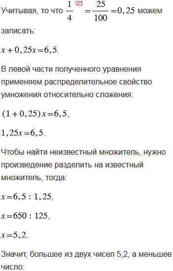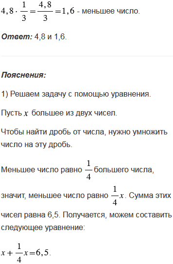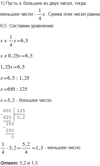 1) Сумма двух чисел равна 6,5. Найдите эти числа, если меньшее число равно