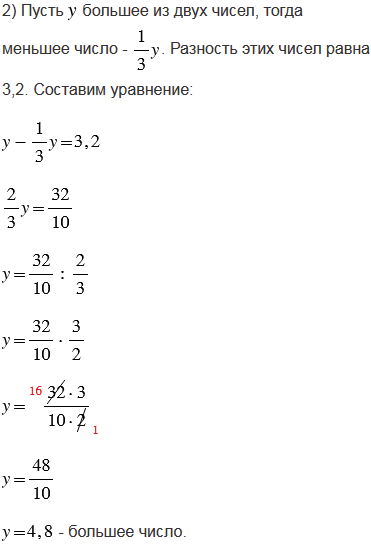 2) Разность двух чисел равна 3,2. Найдите эти числа, если меньшее число равно