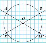 Проведены две прямые, которые пересекают окружность с центром О и радиусом 2 см 5 мм в точках А, В, М и K. Найдите расстояние от центра окружности до этих точек.