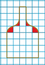 Красные области вместе составляют 2 клетки, ручка и клетки между красными областями 6 клеток, прямоугольник, который образует рабочую область состоит из 5х4 клеток, то есть всего площадь шаблона: