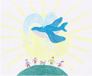 В моей стране Вообразилии живёт кит с крыльями. Когда летним зноем всем становится жарко, он взлетает в небо и поливает детей освежающей водой из океана.