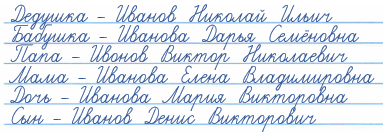 3. Пишем имена (имена и отчества) членов своей семьи.