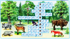 5. Выполняем задние мамы Серёжи и Нади. Недалеко от Москвы есть замечательное место – Приокско – Террасный заповедник. Разгадав кроссворд, узнаём, какие растения и животные там встречаются.