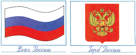 4. Вырежи из Приложения и наклей на эту страницу изображения герба и флага России. Подпиши эти государственные символы.
