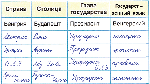5. С помощью книги "Энциклопедия путешествий. Страны мира" заполни таблицу (по образцу, данному в первой строке).