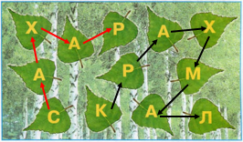3. Наш Попугай – любитель тайн и загадок – предлагает тебе задание. Соедини листья так, чтобы получились названия веществ, которые образуются в зелёной "кухне" растения.