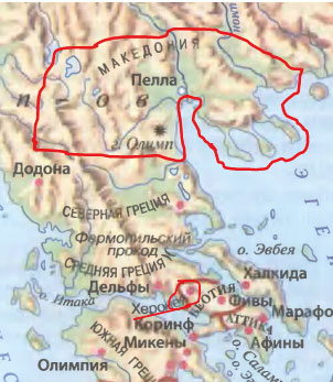 Поработайте с картой (см. с. 218). Закрасьте на контурной карте территорию Македонии. Близ какого города произошло сражение 338 года до н. э.? Укажите его на контурной карте.
