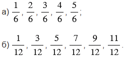 а) Чертим координатный луч и выбираем на нем единичный отрезок, равный 6 клеток. Далее делим единичный отрезок на 6 равных частей, т.е. по 1 клетке (т.к. 6 : 6 = 1). Далее отмечаем на этом луче точки с координатами