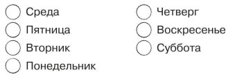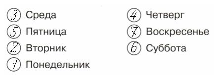2. Пронумеруй названия дней недели в правильной последовательности, начиная с понедельника. Попроси соседа по парте проверить твою работу.