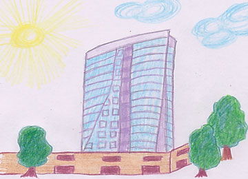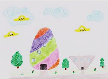 Мне хочется, чтобы в будущем строили необычные цветные здания, и на улицах не было автомобилей. Все машины будут летающие, а город – яркий  и безопасный.