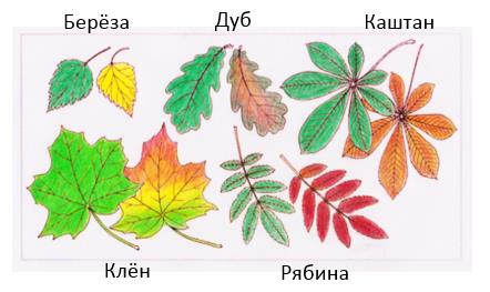 Пояснение: осенью листья одного и того же дерева могут быть нескольких цветов.