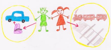 2. Придумайте и нарисуйте эскиз плаката, призывающего к соблюдению правил безопасности в автомобиле, поезде и на железной дороге. Проведите в классе конкурс плакатов.