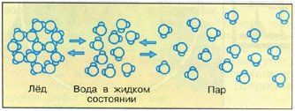 Стрелки показывают, что вода может переходить из одного состояния в другое последовательно: из твёрдого состояния в жидкое, из жидкого состояния в газообразное; из газообразного состояния в жидкое, из жидкого состояния в твёрдое. Вода не может перейти из твёрдого состояния сразу в газообразное. Или из газообразного состояния перейти сразу в твёрдое.