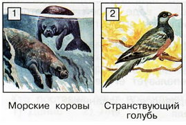 1) Морские коровы 2) Странствующий голубь 3) Зубр