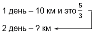 1) 10 : 5 • 3 = 2 • 3 = 6 (км) - прошли во второй день.
