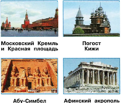 5. Узнай объекты Всемирного наследия по фотографиям. Вырежи фотографии из Приложения и расположи их в соответствующих окошках. Попроси соседа по парте проверить тебя. После проверки наклей фотографии.