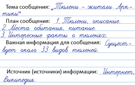 7. Делаем записи для своего сообщения по заданию учебника (с. 82).